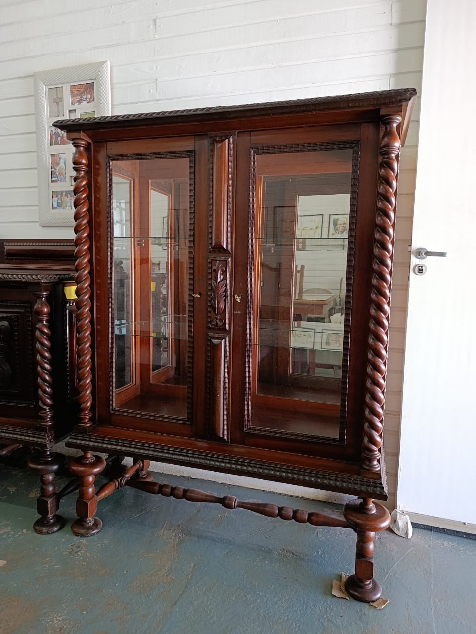– Madeira nobre, entalhes artesanais e colunas torneadas no estilo europeu – Portas de vidro e prateleiras internas, ideal para louças, taças e objetos decorativos – Estrutura robusta e acabamento impecável